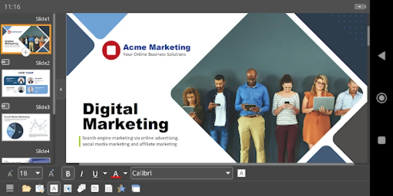 Presentations brings the features of a desktop presentation program to your Android device. You shouldn't settle for less.