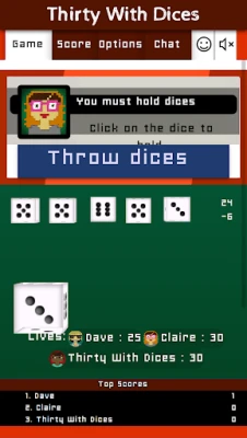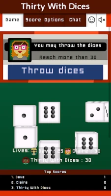 You play this game by throwing 6 dices and reach a total of 30. Every time you throw, you must hold at least one dice that will add up to your total. When all dices have been hold, you can end your turn. If your dice total is below 30, you lose the amount of lives under 30. E.g. if with a total of 27, you'll lose (30-27 =) 3 lives.